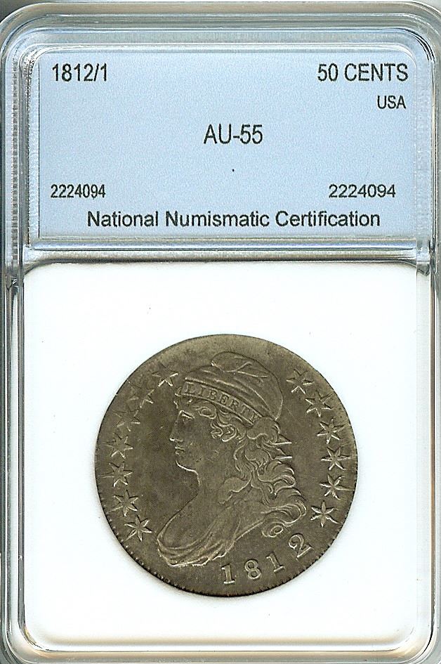 1812/1 CAPPED BUST SILVER 50 CENTS NNC AU55