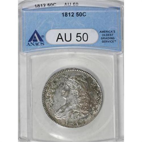 <B>1812 50C AU50 ANACS.</B></I> NGC Census: (27/450). PCGS Population (39/335). Mintage: 1,628,059. Numismedia Wsl. Price for NGC/PCGS coin in AU50: $400. (#6100)<BR><BR><B>Coin Engraver:</B> John Reich<BR><BR><b>Shipping:</b> Coins & Currency (<a target="_blank" href="http://www.heritageauctions.com/common/shipping.php">view shipping information</a>)