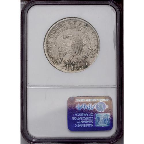 <B>1812<50C> AU53 NGC.</B></I> O-103, R.1. Satin luster bathes protected areas of this stone-gray Capped Bust half. Only a couple of moderate marks are noted, and these are on remote areas of the coin.