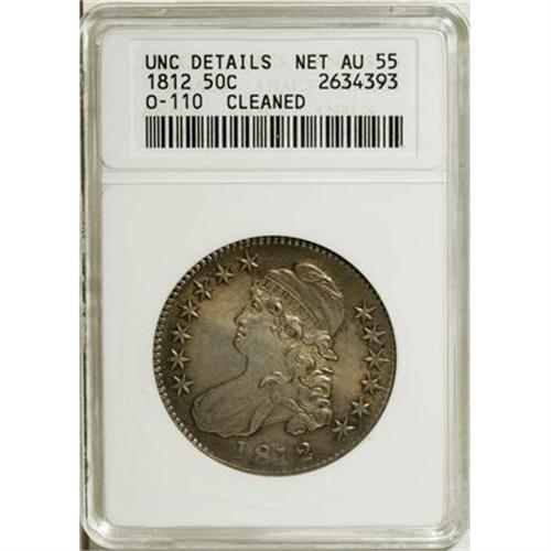 <B>1812 50C --Cleaned--ANACS. UNC Details NET AU55.</B></I> 0-110. NGC Census: (65/351). PCGS Population (74/232). Mintage: 1,628,059. Numismedia Wsl. Price for NGC/PCGS coin in AU55: $635. (#6100)<BR><BR><B>Coin Engraver:</B> John Reich<BR><BR><b>Shipping:</b> Coins & Currency (<a target="_blank" href="http://www.heritageauctions.com/common/shipping.php">view shipping information</a>)