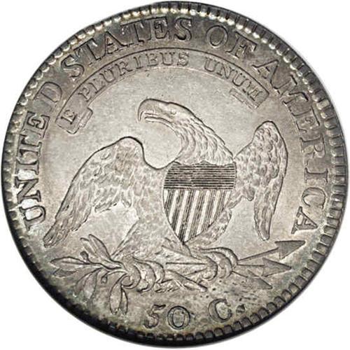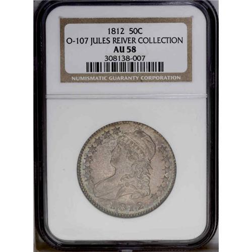 1812 50C AU58 NGC. O-107, R.1. The first 1 in the date 1812[50C] AU58 NGC.