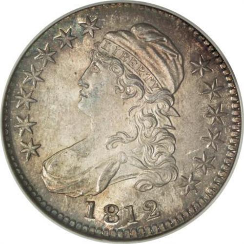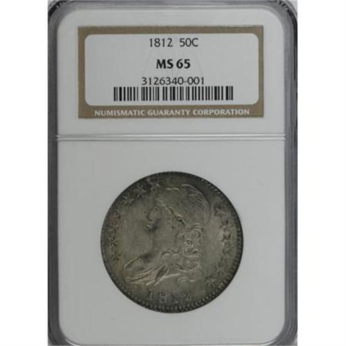 <B>1812 50C MS65 NGC.</B></I> O-105, R.1. An amazing Gem with that old-time collection look, golden-brown surfaces are accented with nearly full peripheral blue toning on each side. The surfaces are exceptional with a single small mark at the right obverse. Probably the second or third finest known example.<BR><BR><B>Coin Engraver:</B> John Reich<BR><BR><b>Shipping:</b> Coins & Currency (<a target="_blank" href="http://www.heritageauctions.com/common/shipping.php">view shipping information</a>)