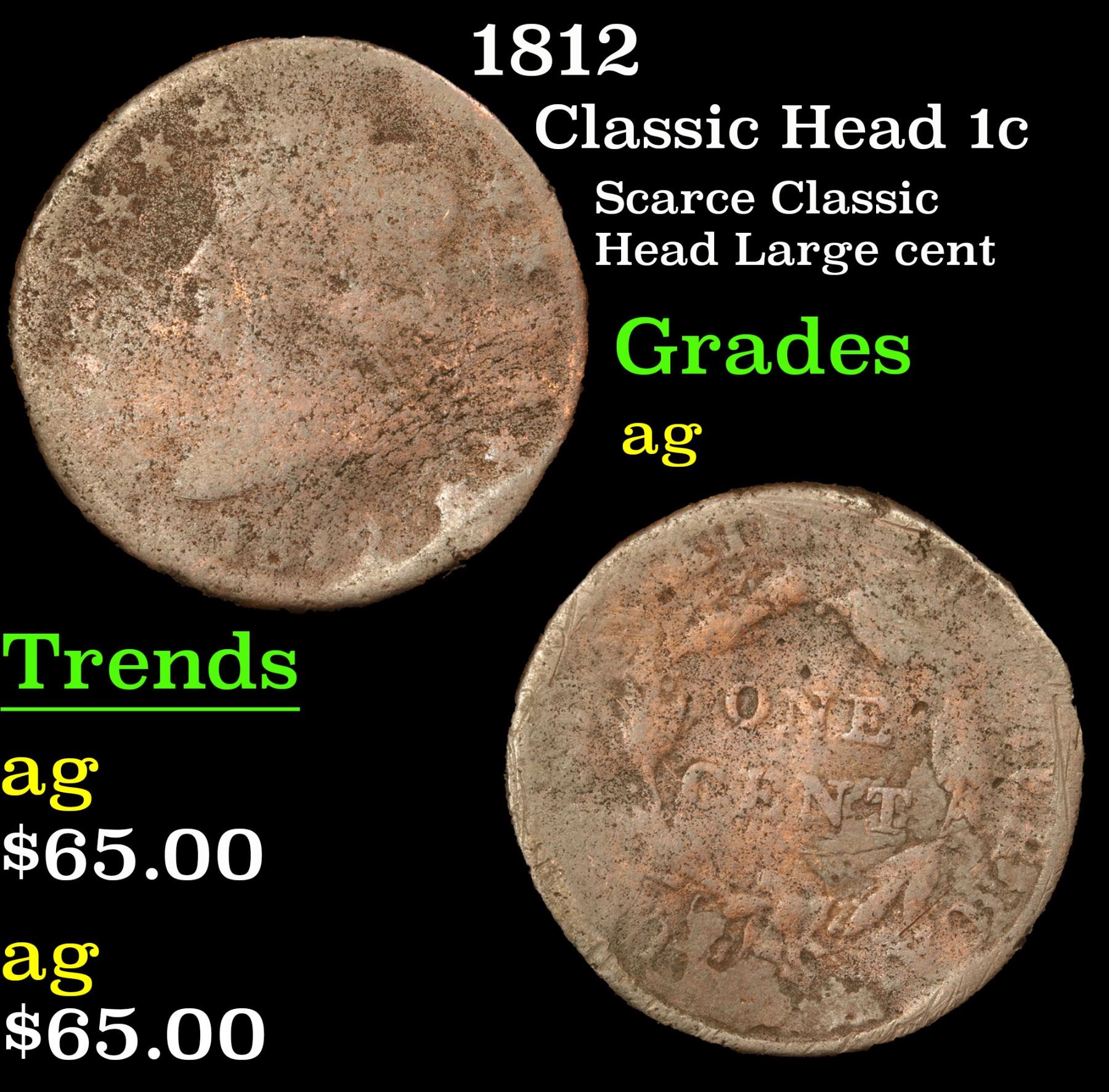 1812 Classic Head Large Cent 1c Grades ag. Scarce Classic Head Large cent
