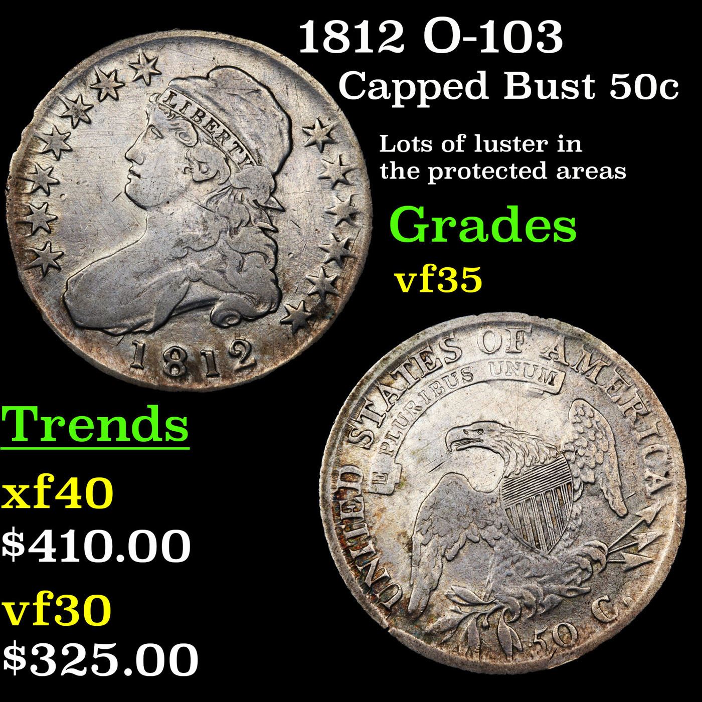 1812 O-103 Capped Bust Half Dollar 50c Grades vf++.