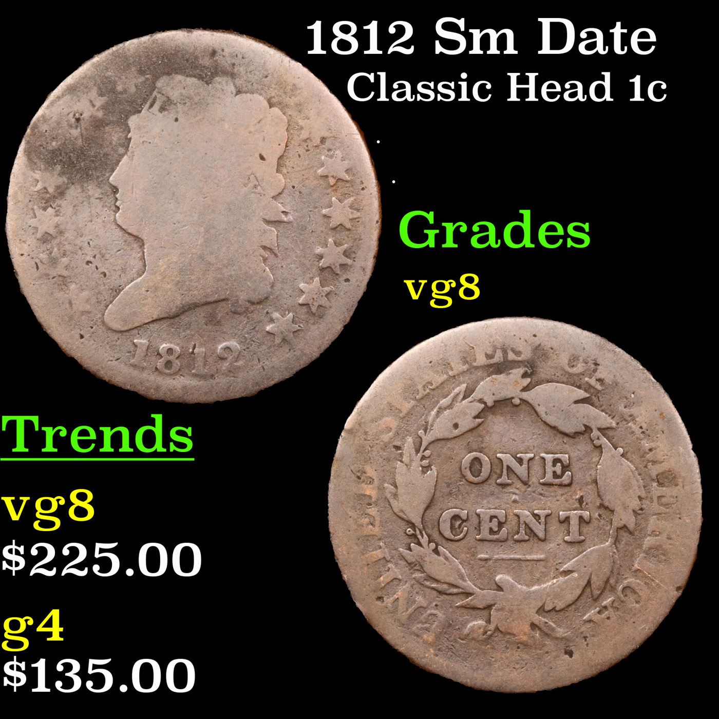 1812 Sm Date Classic Head Large Cent 1c Grades vg, very good