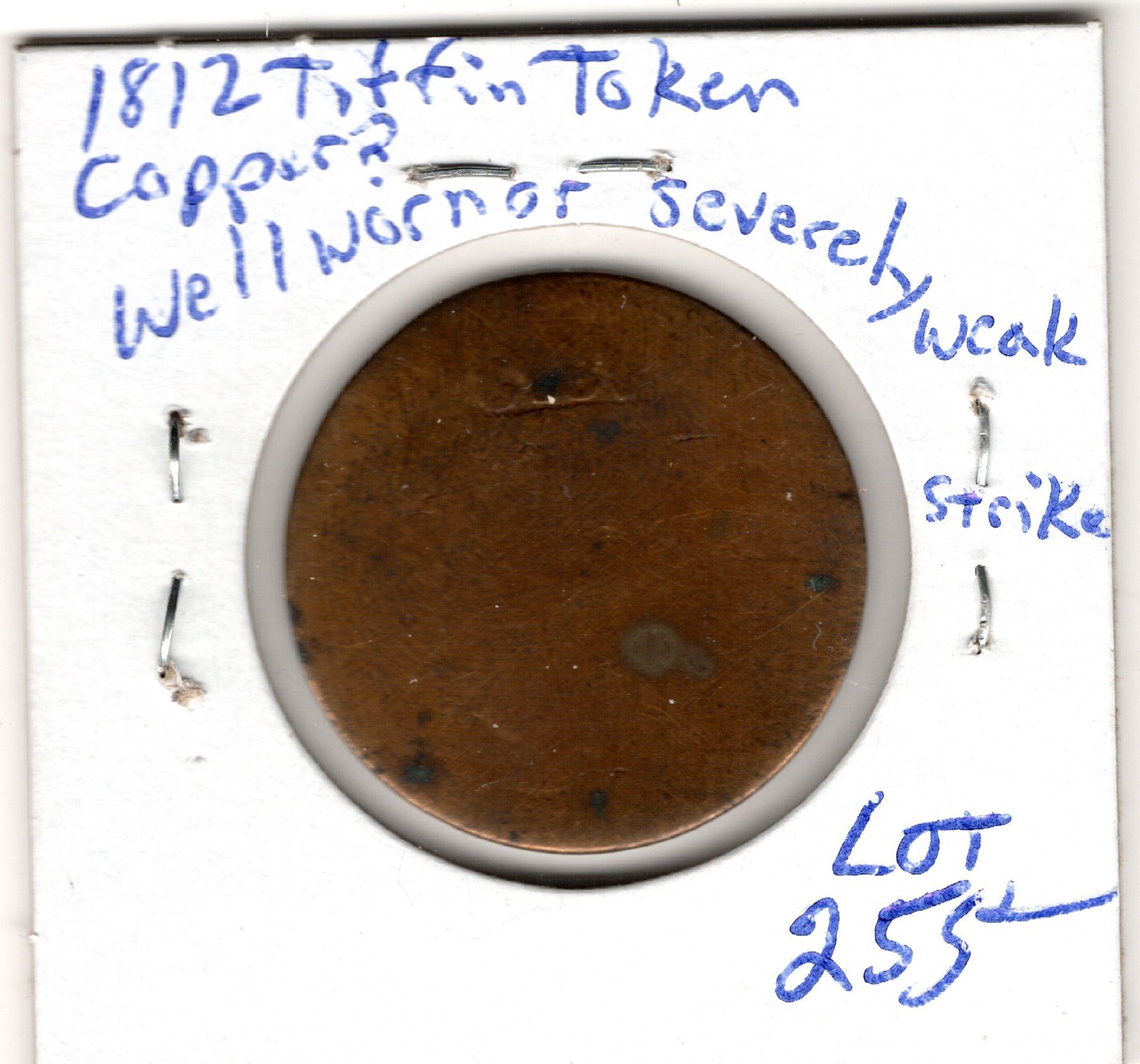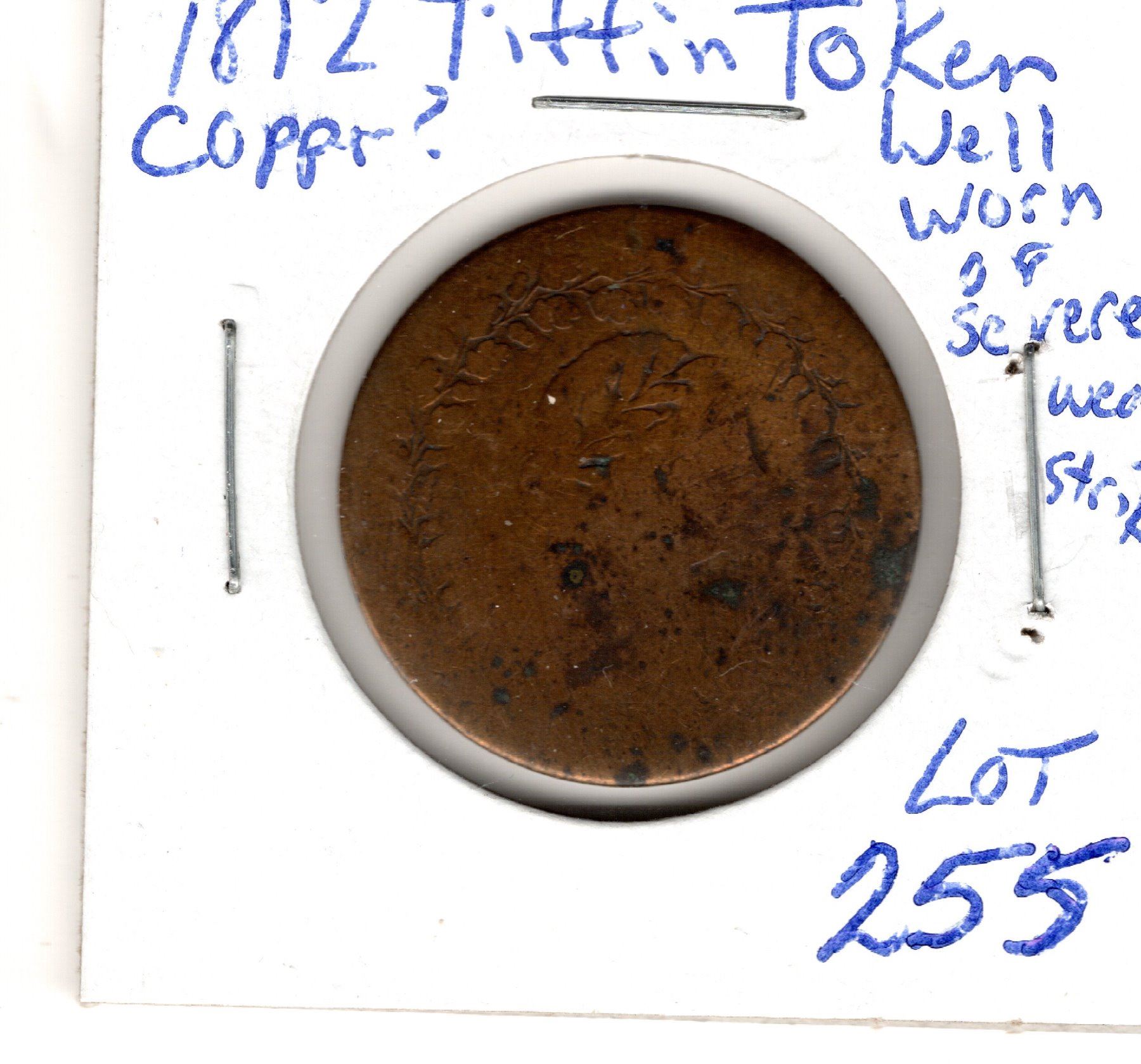 1812 tiffin token well worn or weak strike