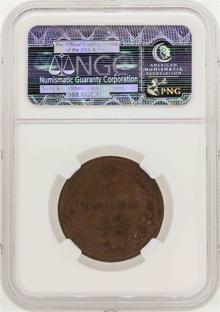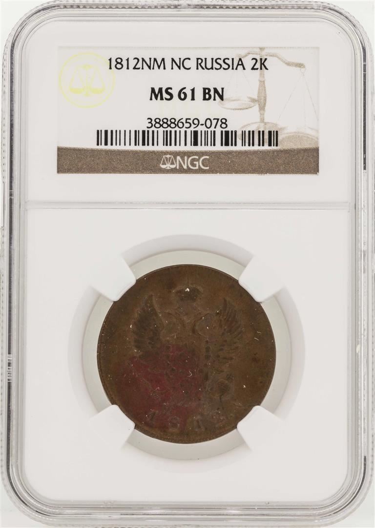 One 1812NM Russia 2 Kopeks Copper Coin NGC MS61BN. NGC Certified.