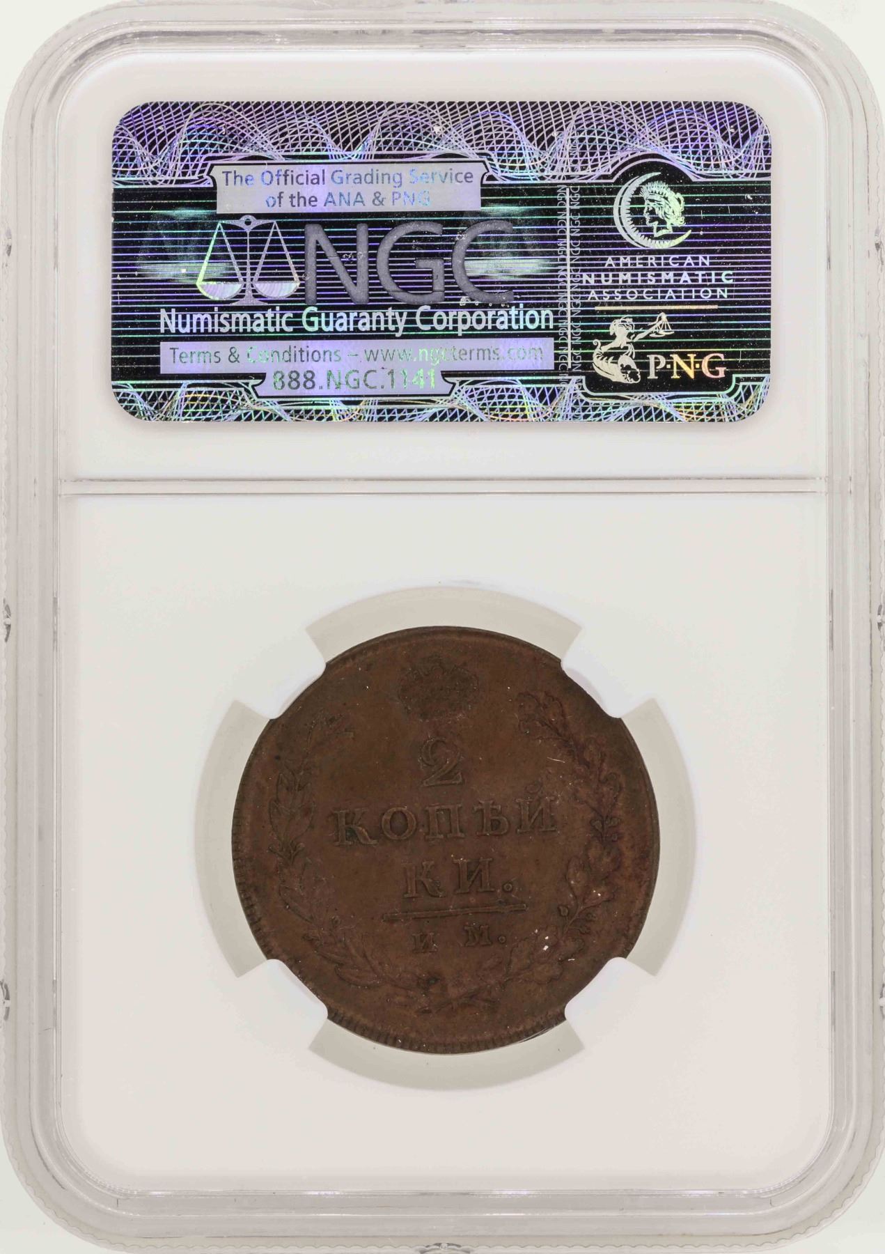 One 1812NM Russia 2 Kopeks Copper Coin NGC MS61BN.