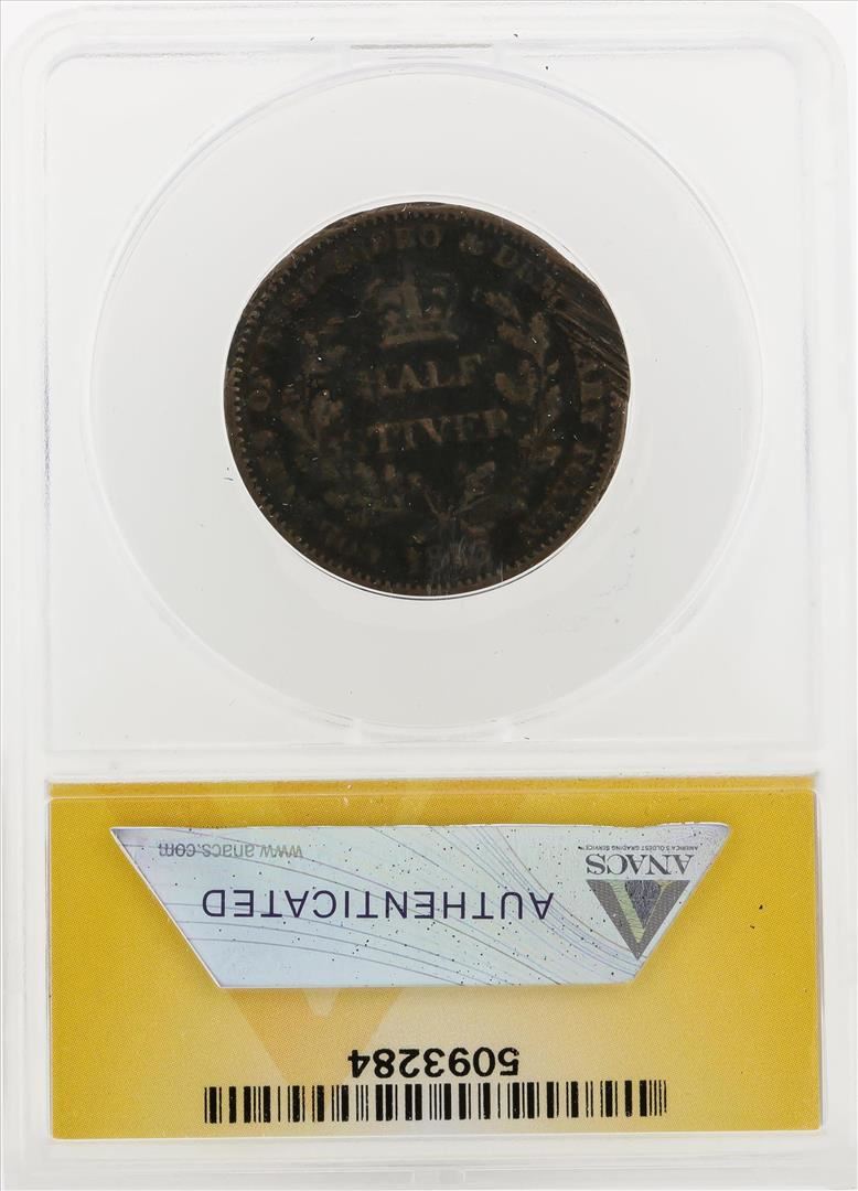 One 1813 1/2 Stiver Essequibo and Demerary Damaged Corroded Coin ANACS VF20 Details. ANACS Certified.