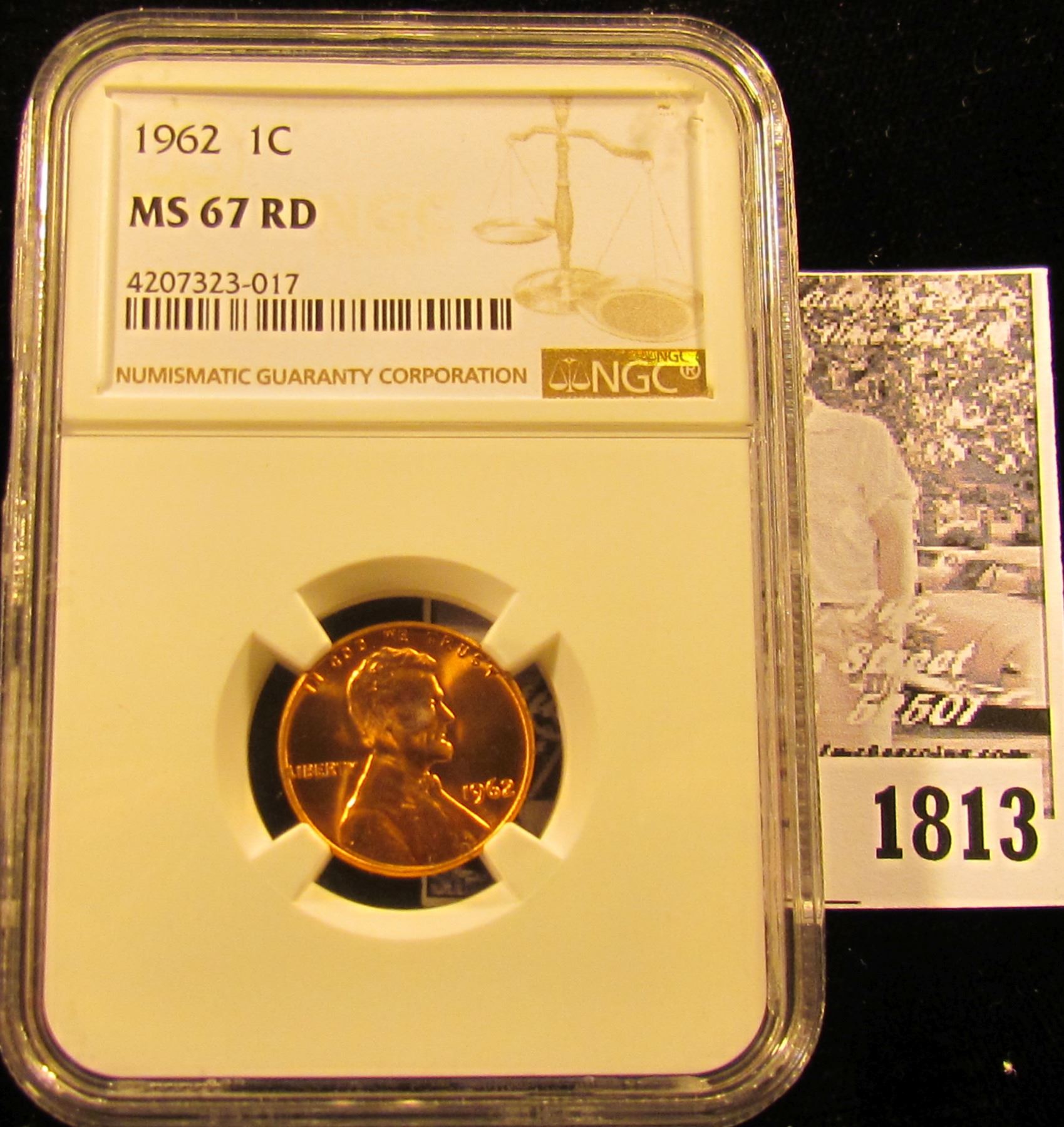 1813 . 1962 P Lincoln Cent NGC slabbed MS67 RD.