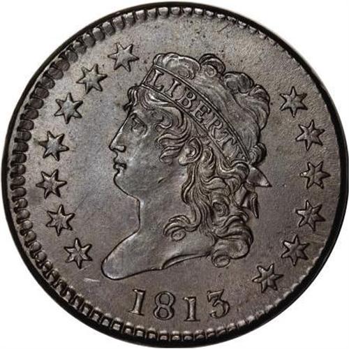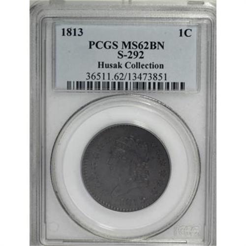 <B>1813 1C MS62 Brown PCGS. S-292, B-2, R.2. </B></I> <B>Noyes XF40; tied for CC-24. Photo #37418. Our EAC Grade XF45.<BR><BR>Equivalents. </B></I>Proskey 1; Doughty 221; McGirk 1A; Clapp 1; EAC 2; <I>Encyclopedia </B></I>1787; PCGS #1570.<BR><B><BR>Variety. </B></I>3 distant from star. Leaf point at upright of D. The obverse appears on S-292. The reverse appears on S-292.<BR><B><BR>Surfaces. </B></I>Both sides of this lovely piece have frosty cartwheel luster. The obverse has a small mark on Liberty's jaw and a few others near the bust tip. This is essentially a Mint State coin, although some abrasions between ONE and CENT lower the net grade, yet they were of little concern to PCGS when it was certified. Olive and dark brown on both sides with purple stains over part of the reverse. While a few stars are flat, the strike is excellent, but not perfectly centered as illustrated.<BR><BR><B>Die State III. </B></I>Traces of clash marks remain visible on both sides, although most of those from earlier die states have faded due to lapping. There is no evidence of an inner ridge that appears in later die states.<BR><BR><B>Appearances. </B></I>Plated in Walter Breen's <I>Large Cent Encyclopedia</B></I> for Die State III.<BR><BR><B>Census. </B></I>Several Mint State and AU examples of the S-292 die combination are known.<BR><BR><B>Provenance. </B></I><I>Henry Chapman; Norweb Collection (Bowers and Merena, 11/1988), lot 2856, $1,650; Bowers and Merena (9/1997), lot 308, $3,520.</B></I><BR><BR><B>Personality. Henry Chapman</B></I> was the younger Chapman brother who began his career working for John Haseltine in 1875 when he was just 16 years old. He was born in Philadelphia on October 18, 1859, and died on January 4, 1935. He discovered the Starred Reverse large cent variety in 1878 while preparing the Bispham Collection for auction. Henry and his brother, Samuel Hudson Chapman, conducted many important auctions, and he went on to conduct many more important sales after the two brothers separated. His wife, Helen, continued to operate their retail storefront until 1948, the business being managed by Ella B. Wright. In Lapp and Silberman, Henry Chapman is described as "a tall man, fairly heavy, with a full head of hair, a heavy moustache, and a huge, bushy, full-faced beard which during the last years of his life was snowy white. Dr. Sheldon recalls H. Chapman as a man with a full beard, a stern look, and with twinkling grey eyes. It has been said that old-time collectors unhesitatingly agreed that Henry Chapman was one of the most colorful figures ever to be met in the numismatic world."<BR><BR><b>Shipping:</b> Coins & Currency (<a target="_blank" href="http://www.heritageauctions.com/common/shipping.php">view shipping information</a>)