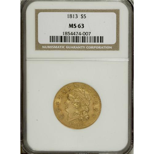 1813 $5 MS63 NGC. Breen-6467, BD-2, R.4. This is the f