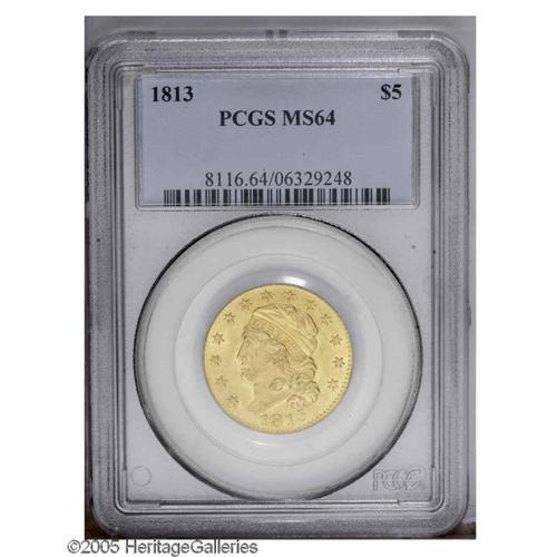 1813 $5 MS64 PCGS. B. 1-A, Miller-119, R.3. Because of 1813[$5] MS64 PCGS.
