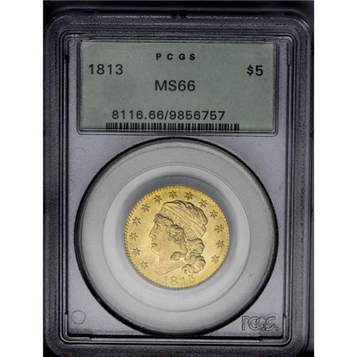 1813 $5 MS66 PCGS. Breen-1B, R.4. Just two varieties o