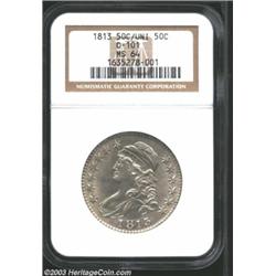 <TABLE cellSpacing=0 cellPadding=0 width="100%" bgColor=#000000 border=0><TBODY><TR><TD width="100%"><TABLE cellSpacing=1 cellPadding=3 width="100%" border=0><TBODY><TR><TD width="100%" bgColor=#79735c><FONT face=arial color=#ffffff size=3><B>Description</B> </FONT></TD></TR><TR><TD width="100%" bgColor=#ffffff><FONT face=arial size=2><B>1813 50C 50C Over UNI MS64 NGC.</B></I> O-101, R.3. A Choice, heavily clashed example with night and day difference in appearance between the two sides. The obverse is a muted silver-gray while golden-bronze toning and flashes of peripheral blue are seen over the reverse. Low end Condition Census for this highly collectible <I>Guide Book</B></I> variety. </FONT></TD></TR></TBODY></TABLE></TD></TR></TBODY></TABLE><BR><A name=PricesRealized></A><TABLE cellSpacing=0 cellPadding=0 width="100%" bgColor=#000000 border=0><TBODY><TR><TD width="100%"><TABLE cellSpacing=1 cellPadding=3 width="100%" border=0><TBODY><TR><TD width="100%" bgColor=#79735c><A name=PR><FONT face=arial color=#ffffff size=3><B>Previous Prices from Heritage Auctions</B> </FONT></A></TD></TR><TR><TD bgColor=#f6f6ed><TABLE cellSpacing=0 cellPadding=0 width="100%" border=1><TBODY><TR><TD align=middle width="33%"><B>Date</B></TD><TD align=middle width="33%"><B>Service</B></TD><TD align=middle width="33%"><B>Price</B></TD></TR><TR bgColor=whitesmoke><TD width="33%"><B>01/01/1999</B></TD><TD width="33%">NGC</TD><TD width="33%">$6,900.00</TD></TR></TBODY></TABLE></TD></TR><TR><TD bgColor=#ffffff><FONT face=arial size=1 ?>PLEASE NOTE: All prices realized reflect the final hammer price PLUS the buyer's premium in auctions that charge a buyer's premium. Each item has a notation at the top of the listing indicating whether that lot included a buyer's premium. Example: A item that sells with a final hammer price of $100 and a 20% buyer's premium will display with a price realized of $120. All information listed is intended to be as accurate as possible, but errors are possible. Please use this guide carefully and inform us of any inaccuracies. </FONT></TD></TR></TBODY></TABLE></TD></TR></TBODY></TABLE><BR><TABLE cellSpacing=0 cellPadding=0 width="100%" bgColor=#000000 border=0><TBODY><TR><TD width="100%"><TABLE cellSpacing=1 cellPadding=3 width="100%" border=0><TBODY><TR><TD width="100%" bgColor=#79735c colSpan=6><FONT face=arial color=#ffffff size=3><B>Price Guide*</B> </FONT></TD></TR><TR bgColor=#f6f6ed><TD align=middle><B>Grade</B> </TD><TD align=middle><B>Coin World<BR>(Trends)</B> </TD><TD align=middle><B>Numismedia<BR>Retail</B> </TD><TD align=middle><B>Numismedia<BR>Wholesale</B> </TD><TD align=middle><B>Coin<BR>Universe</B> </TD><TD align=middle><B>Heritage<BR>Value Index</B> </TD></TR><TR bgColor=#ffffff><TD align=middle>63</TD><TD align=right>$6,750.00</TD><TD align=right>---</TD><TD align=right>$5,825.00</TD><TD align=right>$4,725.00</TD><TD align=right>$3,802.50</TD></TR><TR style="FONT-WEIGHT: bold" bgColor=#cccfdd><TD align=middle>64</TD><TD align=right>$8,500.00</TD><TD align=right>---</TD><TD align=right>$6,900.00</TD><TD align=right>---</TD><TD align=right>$5,787.50</TD></TR><TR bgColor=#ffffff><TD align=middle>65</TD><TD align=right>---</TD><TD align=right>---</TD><TD align=right>$10,750.00</TD><TD align=right>---</TD><TD align=right>---</TD></TR><TR bgColor=#ffffff><TD colSpan=6><FONT size=1>*All information listed is intended to be as accurate as possible, but errors are possible. No item may be returned or refused based on this information which is provided as a service to our customers. You should contact each pricing source directly to determine the accuracy of this information. </FONT></TD></TR></TBODY></TABLE></TD></TR></TBODY></TABLE><BR><TABLE cellSpacing=0 cellPadding=0 width="100%" bgColor=#000000 border=0><TBODY><TR><TD width="100%"><TABLE cellSpacing=1 cellPadding=3 width="100%" border=0><TBODY><TR><TD width="100%" bgColor=#79735c><FONT face=arial color=#ffffff size=3><B>Population Guide</B> </FONT></TD></TR><TR bgColor=#ffffff><TD align=middle><!-- Begin Output of Population Grid--><TABLE cellSpacing=0 cellPadding=0 width="100%" border=0><TBODY><TR><TD vAlign=center><TABLE cellSpacing=0 width="100%" border=1 cellsadding="3"><TBODY><TR><TD vAlign=center><TABLE cellSpacing=0 cellPadding=3 width="100%" border=1><TBODY><TR><TD vAlign=center align=middle bgColor=#f0f1e8 colSpan=2 <CENTER><FONT face=Arial size=2><B>PCGS Pop </B></FONT><CENTER></CENTER></TD><TD vAlign=center align=middle bgColor=#f0f1e8 colSpan=2><CENTER><FONT face=Arial size=2><B>NGC Pop</B></CENTER></FONT></TD></TR><TR><TD vAlign=center><FONT face=Arial size=2>(64)</FONT> </TD><TD vAlign=center align=right><FONT face=Arial size=2>0</FONT> </TD><TD vAlign=center><FONT face=Arial size=2>(64)</FONT> </TD><TD vAlign=center align=right><FONT face=Arial size=2>5</FONT> </TD></TR><TR><TD vAlign=center><FONT face=Arial size=2>(>64)</FONT> </TD><TD vAlign=center align=right><FONT face=Arial size=2>0</FONT> </TD><TD vAlign=center><FONT face=Arial size=2>(>64)</FONT> </TD><TD vAlign=center align=right><FONT face=Arial size=2>1</FONT> </TD></TR></TBODY></TABLE></TD></TR></TBODY></TABLE></TD></TR></TBODY></TABLE><!-- End Output of Population Grid--> Important notice: Heritage usually auctions material at the rate of 200-250 lots per hour. On some occasions eBay Live bid software or the Internet may not be able to keep up with the pace of the auction. We recommend placing a realistic absentee bid now as insurance to avoid disappointment. Occasionally the auctioneer may eliminate or reject an eBay Live bid, and the auctioneer may also reopen a lot after the close of the eBay live bidding (usually because we missed an audience bid), and may reject your bid even if it shows you as the winning bidder. By bidding via eBay Live, you agree that Heritage may award the lot to another bidder at its sole discretion under the circumstances described above or any other reasonable circumstances. Also please note that all Heritage lots 