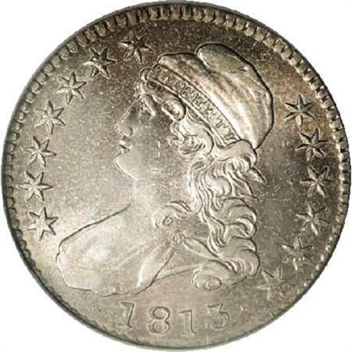 <B>1813<50C> 50C Over UNI--Whizzed--NCS. AU Details.</B></I> O-101, R.2. A popular variety which features the UNI in UNITED engraved in error at 6 o'clock on the reverse. Gray-lavender surfaces have been harshly cleaned. Envelope Included.