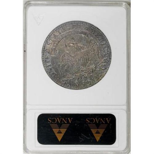 <B>1813 50C AU58 ANACS.</B></I> O-110, R.1. Powder-blue and almond-gold toning blend throughout this satiny example. Struck from multiply clashed dies. The obverse die is worn, with the stars drawn to the borders and the dentils mostly absent.<BR><BR><B>Coin Engraver:</B> John Reich<BR><BR><b>Shipping:</b> Coins & Currency (<a target="_blank" href="http://www.heritageauctions.com/common/shipping.php">view shipping information</a>)