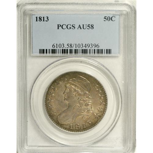 <B>1813 50C AU58 PCGS.</B></I> O-103,R.2. Exquisitely struck throughout, with a layer of light to medium tan patination. Clash marks are visible on each side.<BR><BR><b>Shipping:</b> Coins & Currency (<a target="_blank" href="http://www.heritageauctions.com/common/shipping.php">view shipping information</a>)