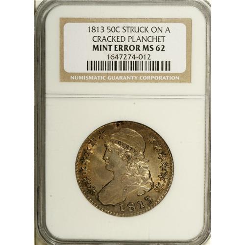 1813 50C --Cracked Planchet--MS62 NGC. O-103, R.2. Deep
