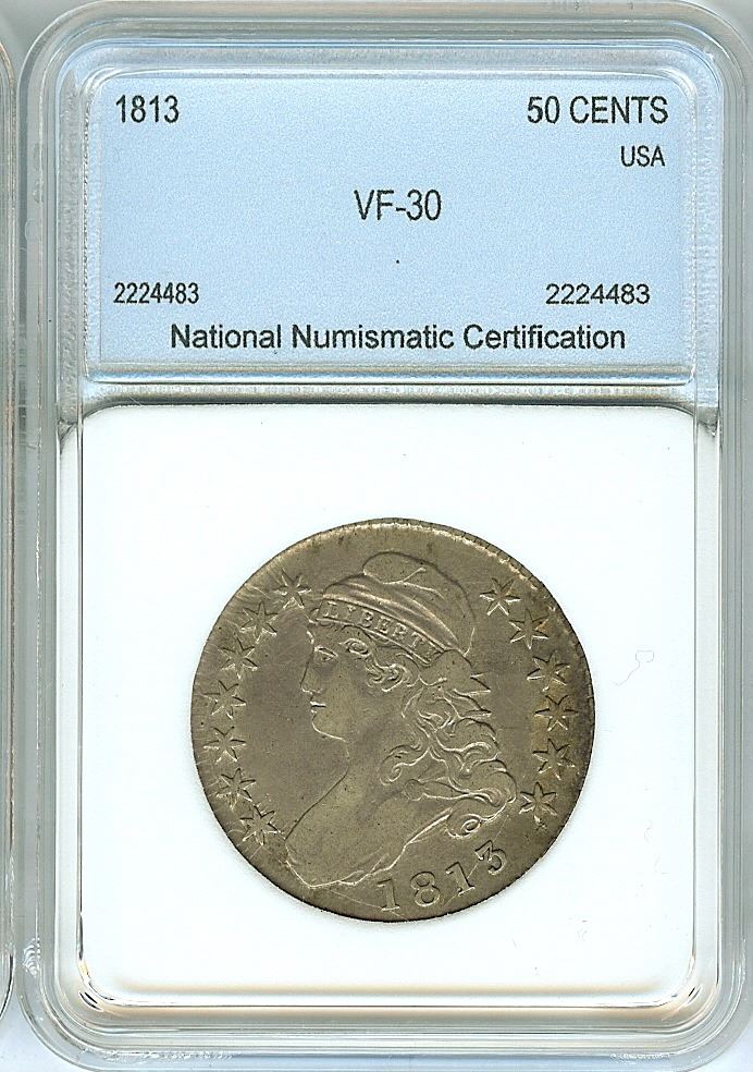 1813 CAPPED BUST SILVER 50 CENTS NNC VF-30