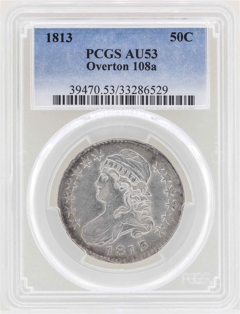 One 1813 Capped Bust Half Dollar Coin Overton 108a PCGS AU53. PCGS Graded.