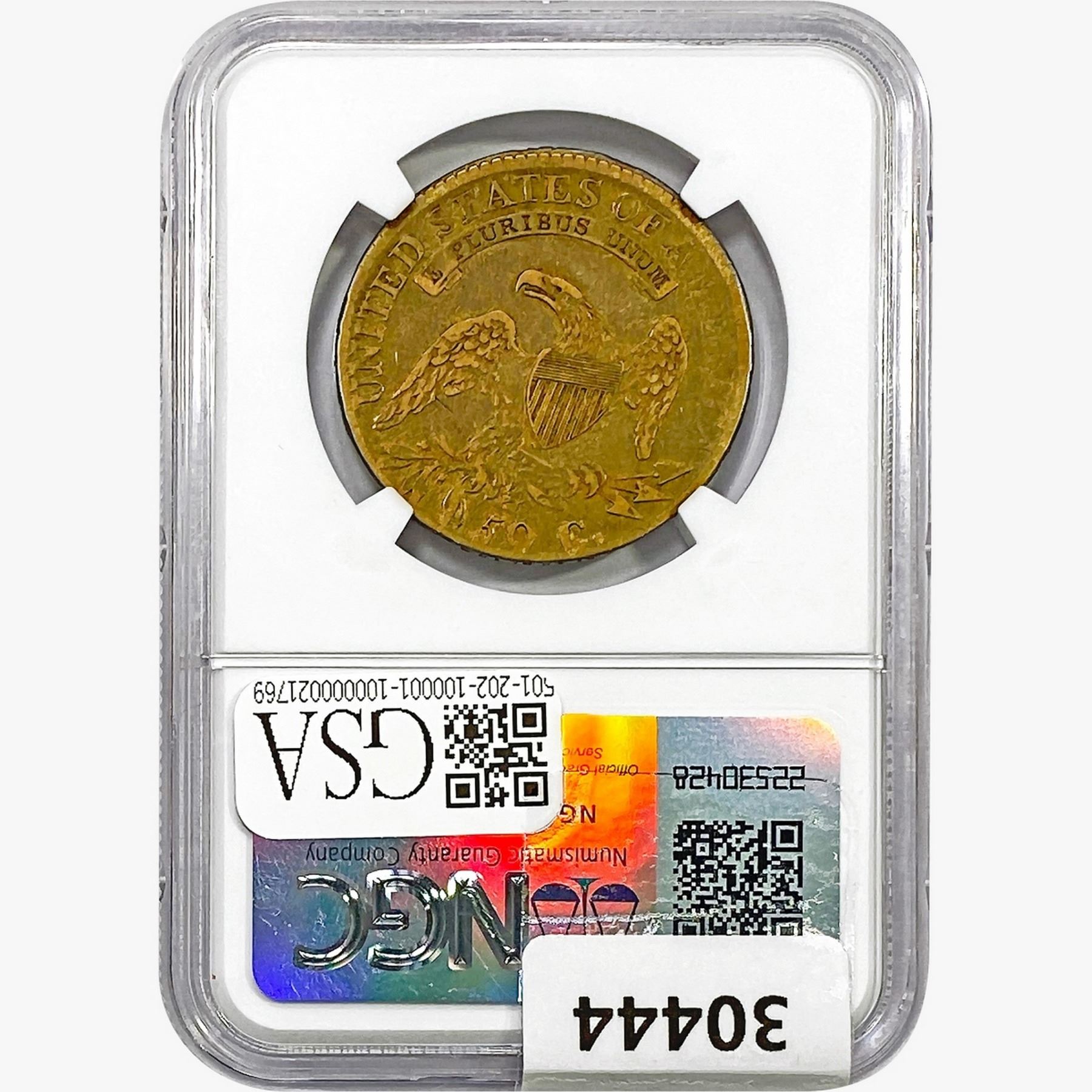 e. Coins sold referencing a third-party grading service are sold “AS IS” without any express or implied warranty, except for a guarantee by GSA that they are genuine. Removal or alteration of the holder, voids all of Bidder’s claims concerning that Product. Certain warranties may be available from the grading services and Bidders are referred to them for further details: Numismatic Guaranty Corporation (NGC), PO Box 4776, Sarasota, FL 34230, www.ngccoin.com/services/writtenguarantee.asp; Professional Coin Grading Services (PCGS), PO Box 9458, Newport Beach, CA 92658, www.pcgs.com/guarantee.html; ANACS, 6555 S. Kenton St., Ste. 303, Englewood, CO 80111; and Independent Coin Grading Co. (ICG), 7901 East Bellview, Ave., Suite 50, Englewood, CO 80111.