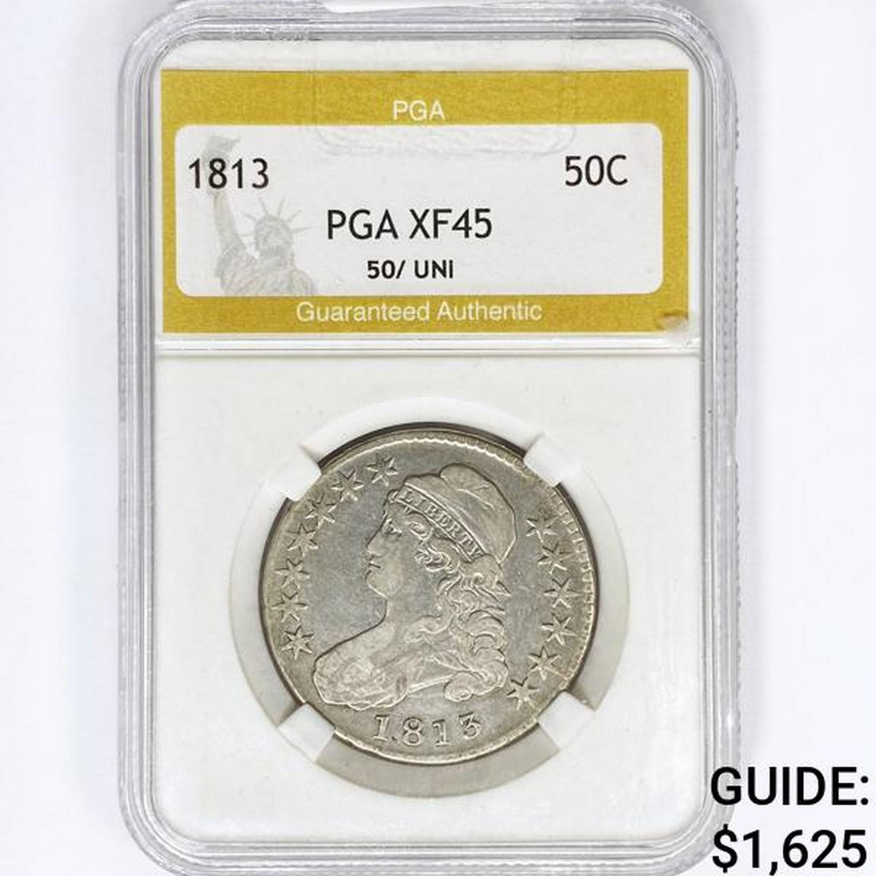 1813 Capped Bust Half Dollar PGA XF45 50/UNI