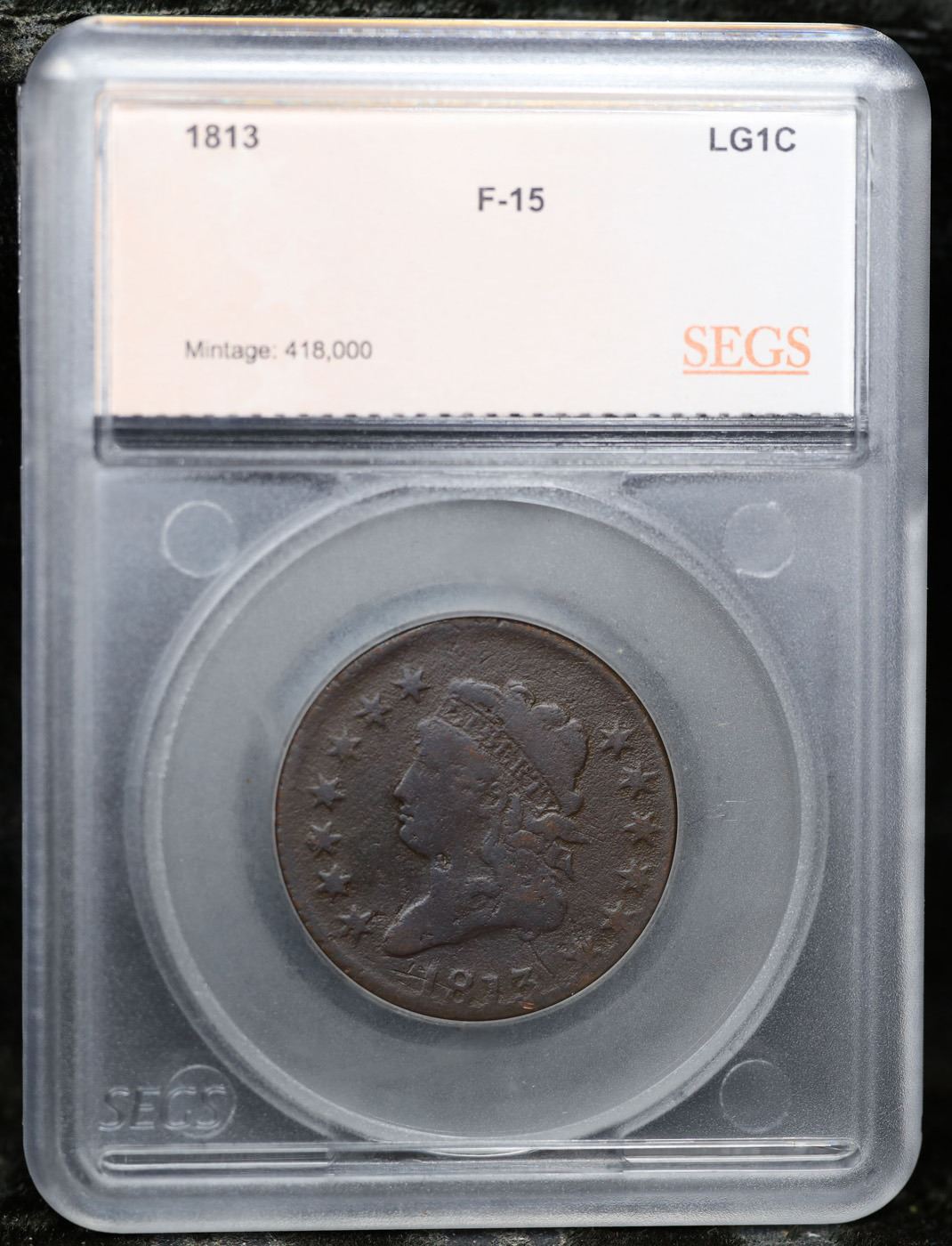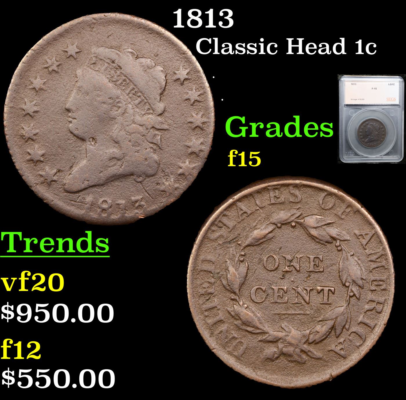1813 Classic Head Large Cent 1c Graded f15 By SEGS.