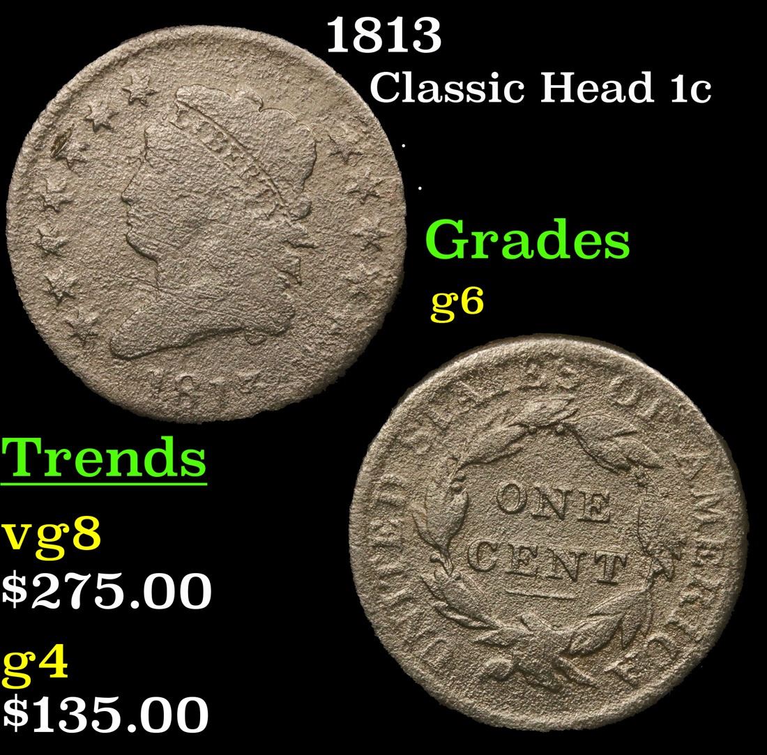 1813 . . Classic Head Large Cent 1c Grades g+.