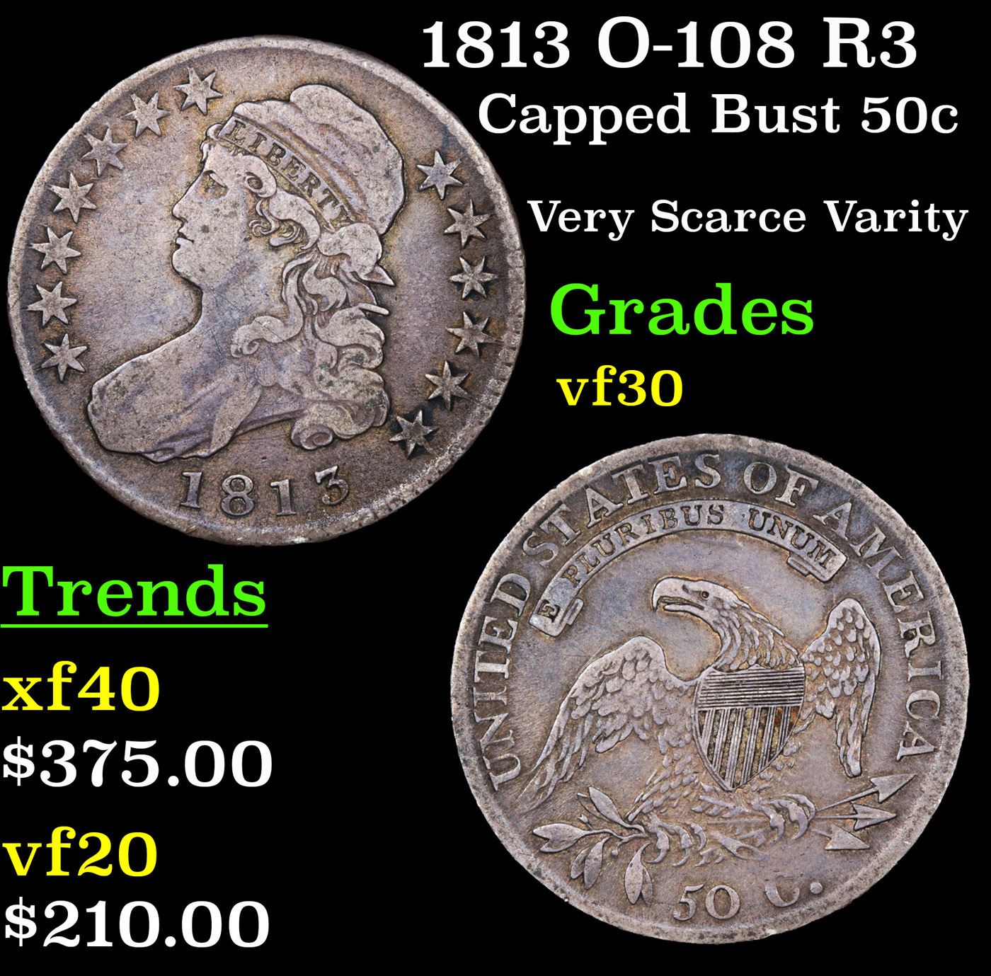 1813 O-108 R3 Capped Bust Half Dollar 50c Grades vf++.