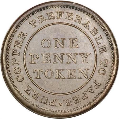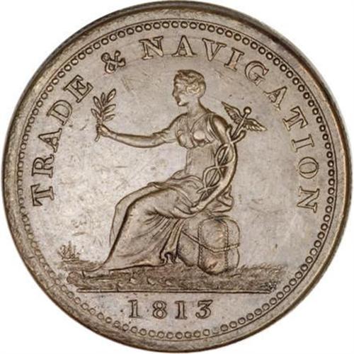 <B>1813 Trade and Navigation Token, Breton-962, NS-20A4.</B></I> Br-962, NS-20A4. Copper, 33 mm. Pure Copper Preferable to Paper One Penny Token. The condition, with just a hint of original luster, is above the normal found for this token. The current Charlton catalog value is $475. <BR> <BR><BR><b>Shipping:</b> Coins & Currency (<a target="_blank" href="http://www.heritageauctions.com/common/shipping.php">view shipping information</a>)