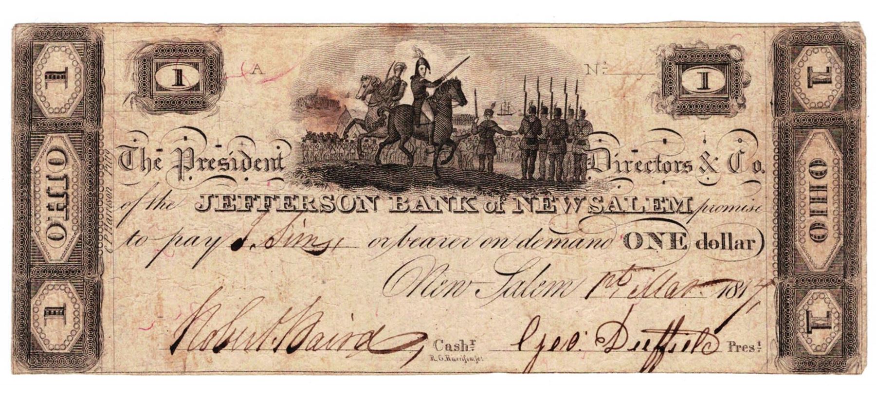 1814 $1 Jefferson - Bank of New Salem ,OH - Obsolete Bank Note