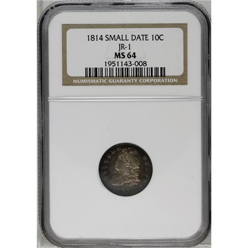 "1814 10C Small Date MS64 NGC. JR-1, R.3"