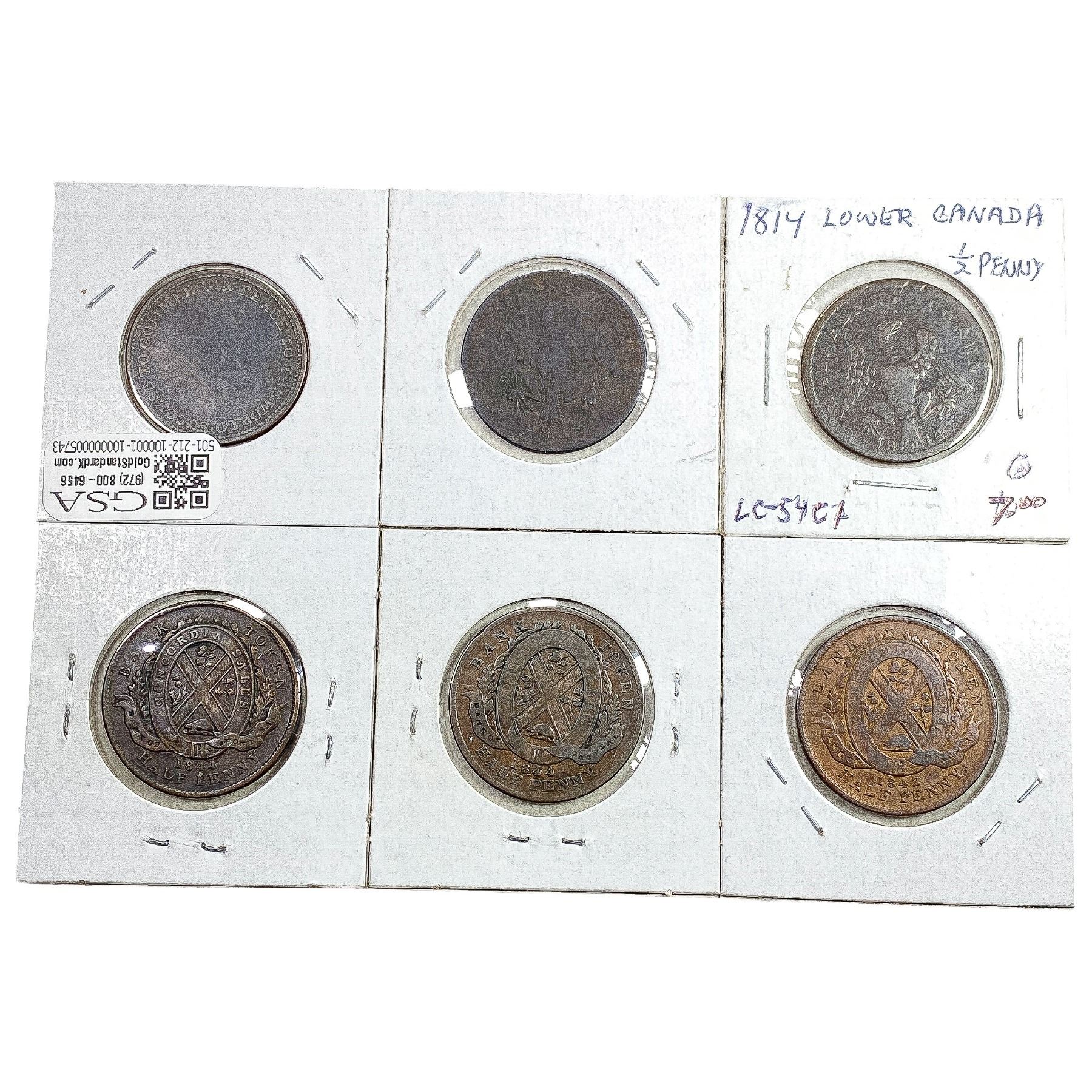 1814-1844 Canadian Provincial Tokens [6 Coins]