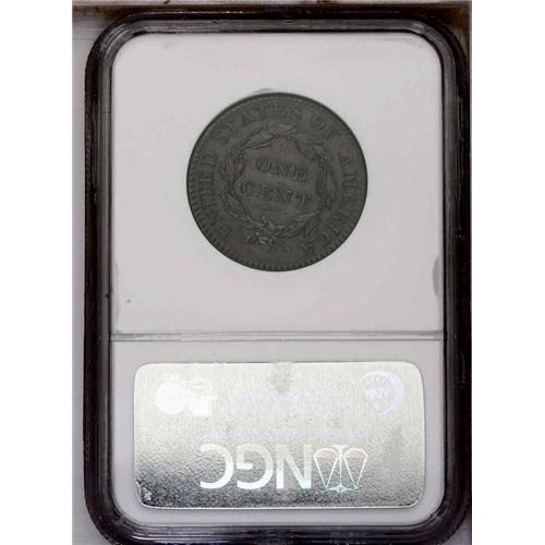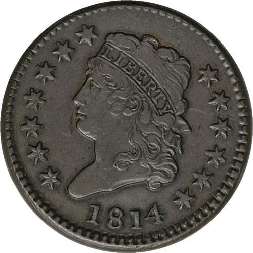 <B>1814<1C> Plain 4. S-295, B-2, R.1. AU50 NGC. VF30 EAC.</B></I> Die State II. Probably set aside in rather large numbers as the last of their kind, as many examples are seen today in high grade, lightly circulated condition. This piece shows the usual deep, rich chocolate brown coloration characteristic of the variety. Somewhat irregularly struck, the surface flaws on this piece are limited to a few small marks in the left obverse field and a thin scratch across the left half of the center of the obverse. Envelope Included.