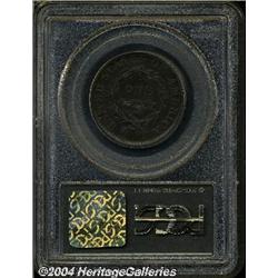 <B>1814<1C> Plain 4 AU50 PCGS.</B></I> S-295, R.1. An attractively defined mahogany-brown representative with smooth surfaces and impressive eye appeal. Not a rare die marriage in lowly circulated grades, but very scarce in AU. A die crack (as made) wanders across the lower right obverse. The sole Plain 4 variety, and the final Sheldon marriage. No Cents are dated 1815, since the War of 1812 interrupted the supply of planchets from Boulton's mint in England. <BR><BR><B>Important notice:</B> Heritage usually auctions material at the rate of 200-250 lots per hour. On some occasions eBay Live bid software or the Internet may not be able to keep up with the pace of the auction. We recommend placing a realistic absentee bid now as insurance to avoid disappointment. Occasionally the auctioneer may eliminate or reject an eBay Live bid, and the auctioneer may also reopen a lot after the close of the eBay live bidding (usually because we missed an audience bid), and may reject your bid even if it shows you as the winning bidder. By bidding via eBay Live, you agree that Heritage may award the lot to another bidder at its sole discretion under the circumstances described above or any other reasonable circumstances. Since eBay bids are not shown to us until we open the lot on the floor, we treat those bids just like floor bids. In most cases the floor responds before the eBay bid is presented to us, due to Internet lag time, so for consistency we have made it a policy that floor bids are always considered first over tie eBay live bids. Also please note that all Heritage lots purchased through eBay Live carry a 20% Buyer's Premium. Please make sure you read the Terms and Conditions before you bid.