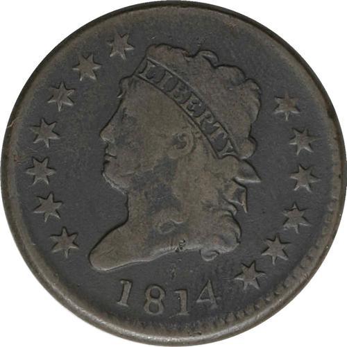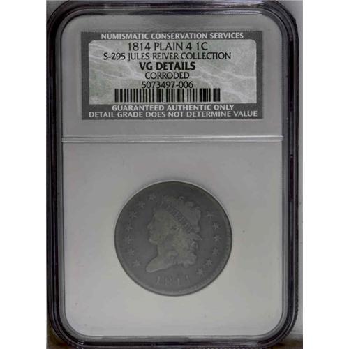 <B>1814<1C> Plain 4. S-295, B-2, R.1--Corroded--NCS. VG Details. Good 6 EAC.</B></I> Die State XI. Liberty's "beard" is complete from chin to throat. Faintly corroded, but with attractive two tone coloration, the devices light tan and the fields dark steel.