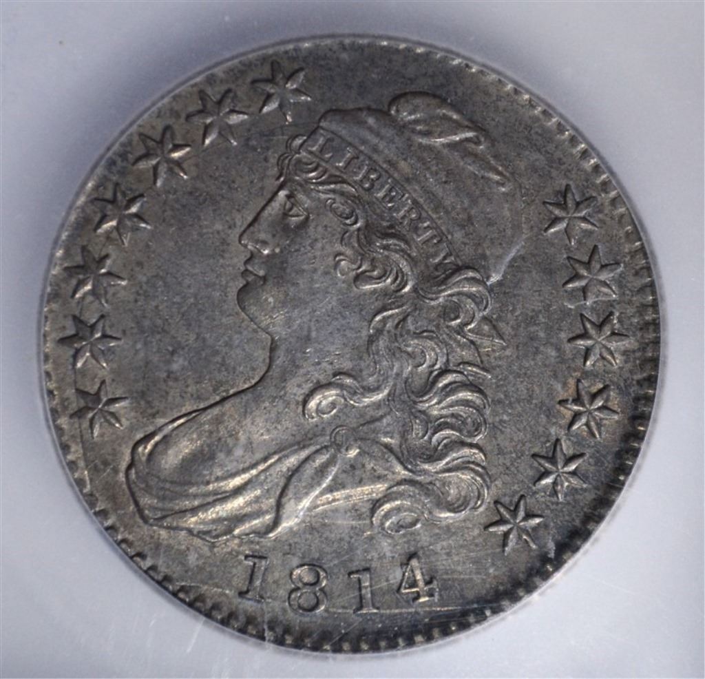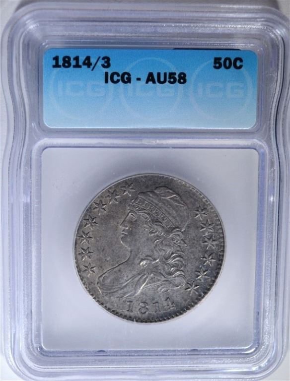 1814/3 BUST HALF DOLLAR ICG AU-58 ESTIMATE $3000 - $5000.