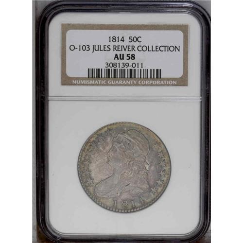 1814 50C AU58 NGC. O-103, R.1. Gently toned in rose-gr 1814[50C] AU58 NGC.