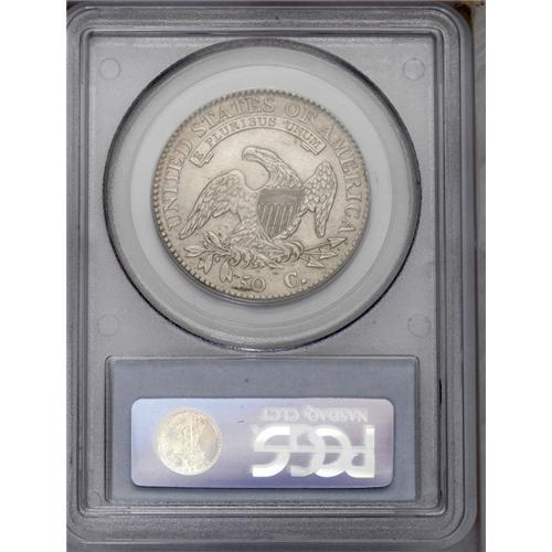<B>1814 50C MS62 PCGS.</B></I> O-104a, R.1. Die cracks on both obverse and reverse confirm the later die state of this variety. This essentially untoned, light-gray example is well struck on the obverse periphery, where only stars 5 through 7 lack central definition, but light roller marks are seen on the obverse center, and the reverse shows strike weakness on the eagle's upper left (facing) wing. A small grease strike-through is noted under 50 on the reverse.<BR><I>From The Westmoreland, Virginia Collection.</B></I>