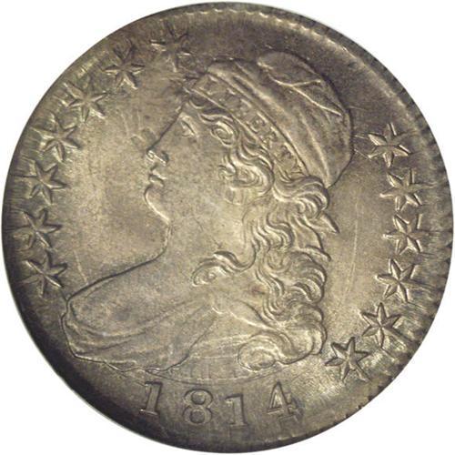 1814 50C MS65 NGC. O-103, R.1. A vertical die break (a