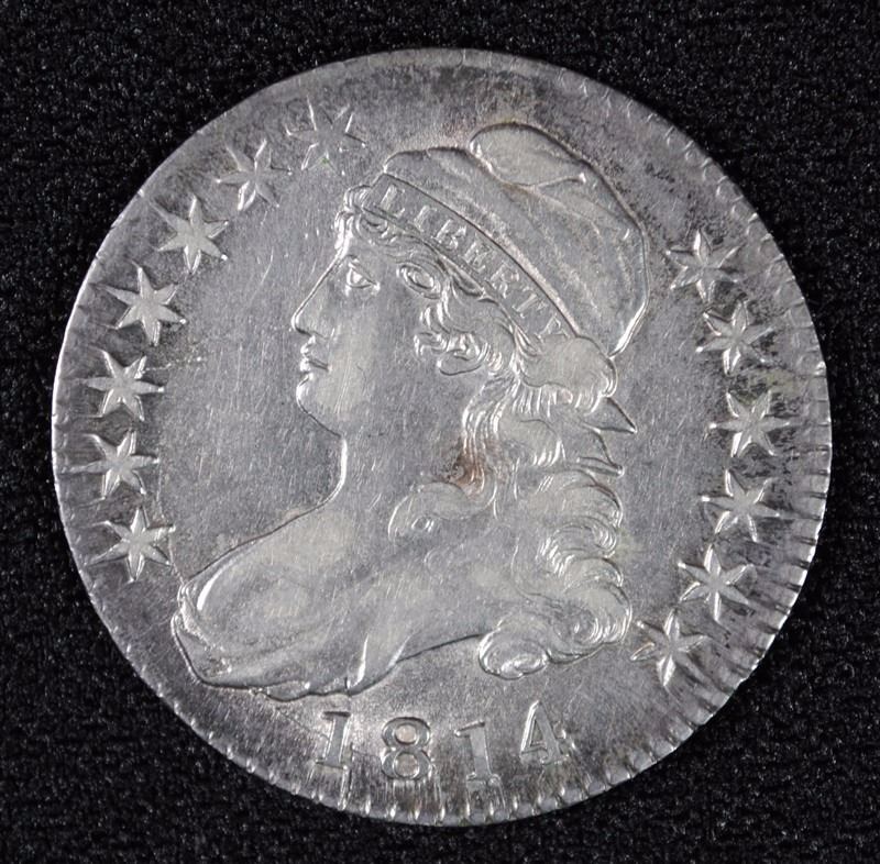 1814 BUST HALF DOLLAR, AU  NICE LUSTRE, TYPICAL WEAK STRIKE