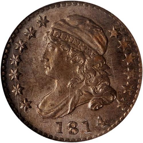 A war was raging across portions of the new American landscape when this dime was minted in 1814. The British, our adversaries in the War of 1812, set into motion their plan for a three-part invasion of U.S.: Chesapeake Bay, Lake Champlain, & the mouth of Mississippi River. The British were eventually turned back at Baltimore harbor. But on August 24-25, 1814, their forces burned Washington, D.C. and the Capitol. President and First Lady Madison fled the White House. Then, in September 1814, the Battle of Plattsburgh (Lake Champlain), where the U.S. forces secured our northern border with a stunning victory over a larger British force. On December 15,1814, The Hartford Convention formed by a group of Federalists to discuss secession from the Union. The Convention's proposed seven amendments to protect the influence of Northeastern states. Finally, on December 24, 1814, one day before Christmas, the Treaty of Ghent was signed ending hostilities. The British and American diplomats agree to return to the status quo from before the war. A busy year for such a little dime to slip past the hands of merchants and the public in its full, original pristine condition!