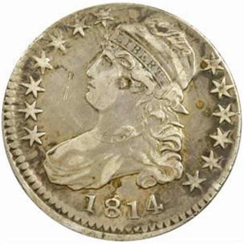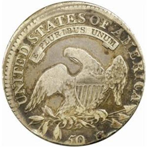 1814 Capped 50C. O-108a. Rarity-1. E/A in STATES-Struck 5% Off Center-Fine12 Damaged (Uncertified)