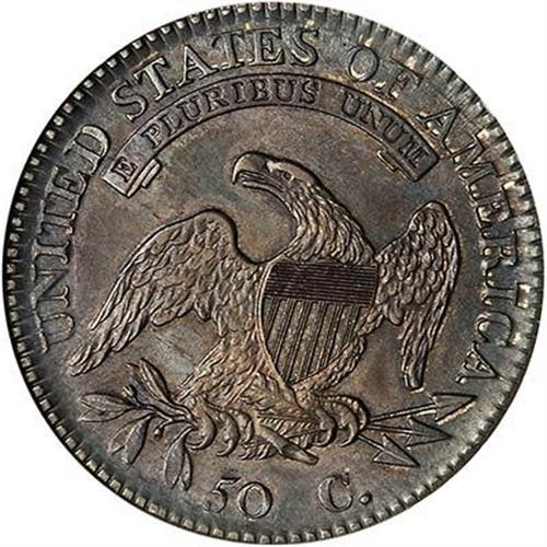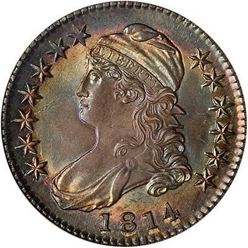 Attractively toned, a well struck, lustrous example of this early Bust half dollar. Perfect for a Type set or a historic-oriented coin show display. In 1814, the British burned Washington, D.C., or as much of it as they could, during an invation of the nation's capital. (#6105)