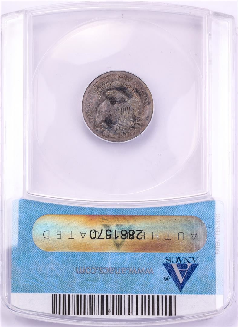 One 1814 Capped Bust Small Date Dime Coin ANACS F12 JR-1. ANACS Certified.