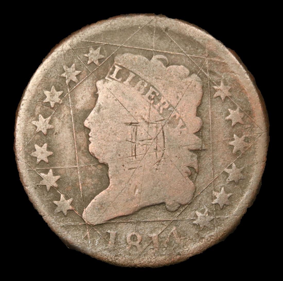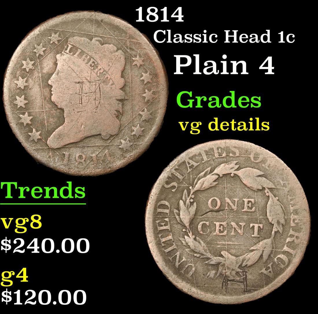 1814 Plain 4 . Classic Head Large Cent 1c Grades vg details.