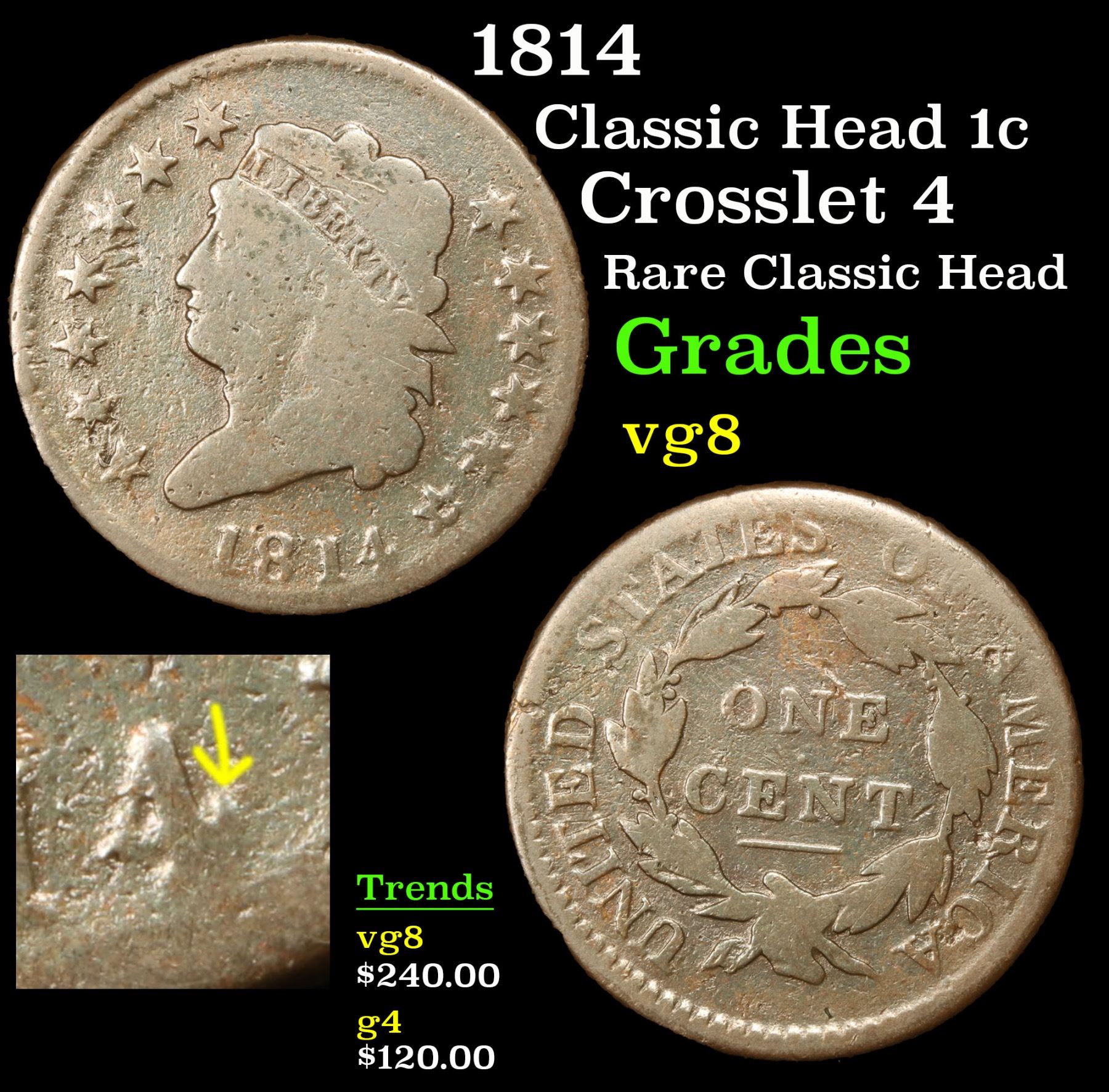 1814 Classic Head Large Cent 1c Grades vg, very good. Crosslet 4; Rare Classic Head A Corey's Pick, Bid to Win, Don't let it get Away Coin