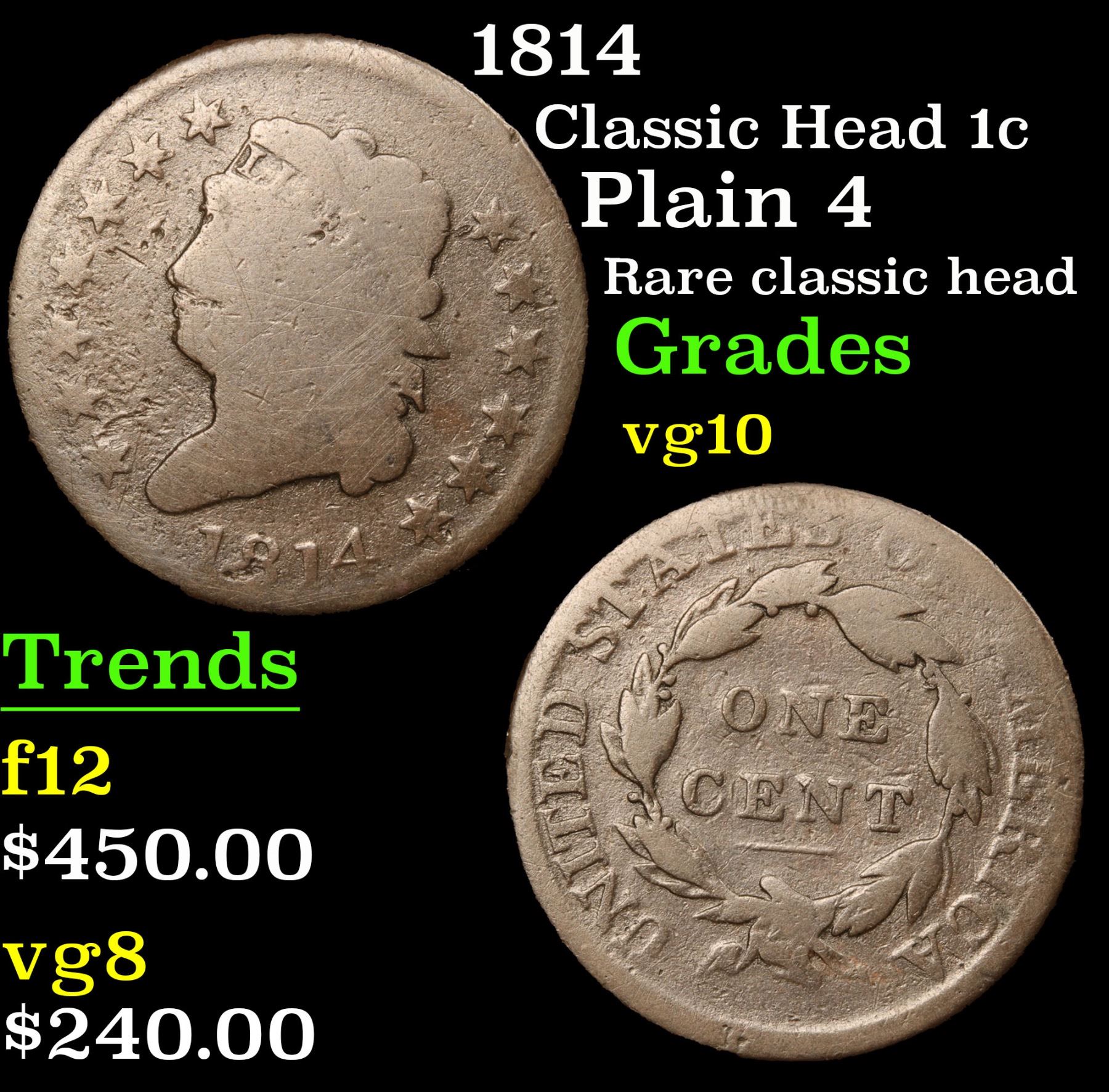 1814 Classic Head Large Cent 1c Grades vg+. Plain 4; Rare classic head