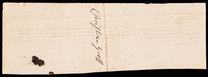 This very rare Partly-Printed Lottery Form, dated and issued in 1814, Unlisted type. Text reads, in part: “PURCHASER PROMISES TO PAY $200 FOR A DEED FOR ANY LOT IN COLUMBIA EXTENDED THAT IS DRAWN AGAINST THIS CERTIFICATE NO. 18. PAYABLE TO DANIEL MUSSER & RUDOLPH HERR THEIR HEIRS OR ASSIGNS.”
